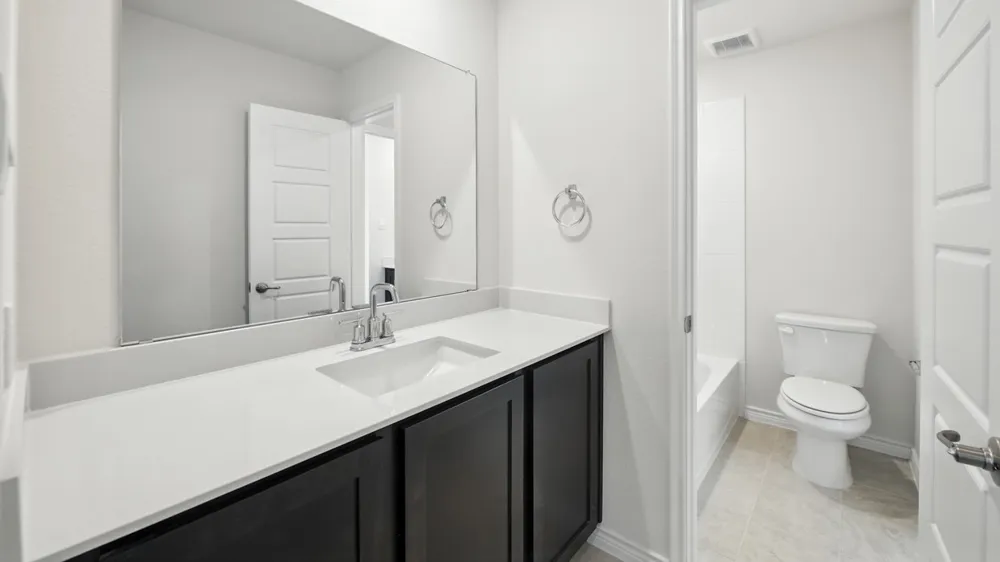 Spacious bedroom 2 .5 bath in DR Horton's Exterior includes divided light windows with front porch and back covered patio. The interior includes raised panel interior doors with designer lever handles and smart door lock on front exterior door. The gourmet kitchen includes 42 inch cabinets with stainless steel appliances. Home features include tankless water heater, radiant barrier and smart home package.